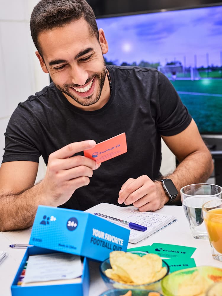 Football IQ is a trivia game designed for all football fans. Each card features a question on the front and the answer(s) with the maximum possible score on the back
